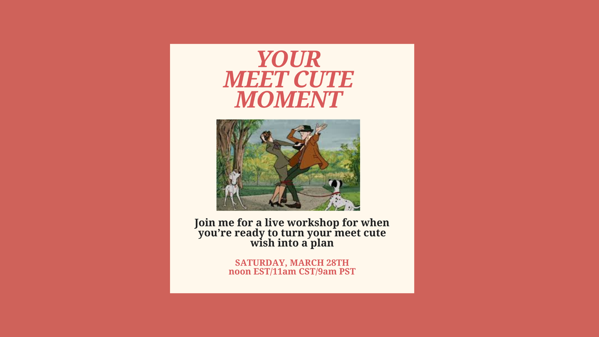 If this resonates, I created this workshop for you. In our time together, we're going to dive into what it takes -- mentally, skillfully, and strategically to turn your meet cute moment from a wish to a plan.